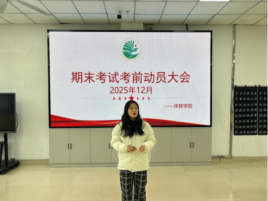 会上,刘彦泽首先就期末考试的时间安排、考场规则、答题规范等核心要求进行详细说明,结合体育专业学科特点分享了针对性备考方法,鼓励同学们以严谨务实的态度投入复习,以从容自信的心态迎接考试,用诚信答卷书写青春担当。随后,刘彦泽老师重点强调了“诚信考试”的核心要义,通过剖析典型案例,深入阐释了考试作弊对个人学业发展、学院学风建设的严重危害,要求全体同学严格遵守考试规章制度,坚决抵制舞弊行为,以实际行动维护公平公正的考试环境,锤炼新时代大学生的优良品格。